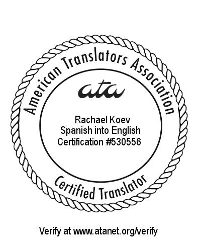 Certified in Spanish-to-English and Portuguese-to-English Translation, American Translators Association (ATA)